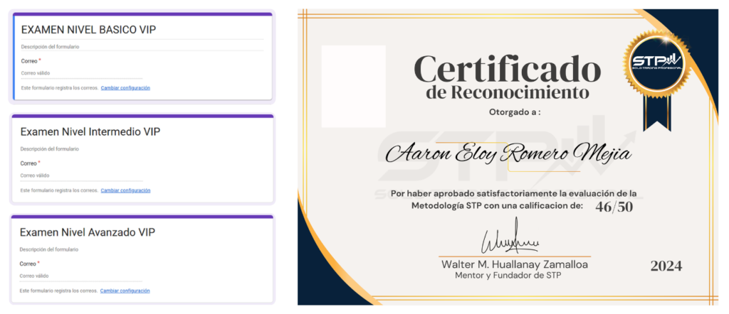 En STP cada nivel tiene evaluación, y el certificado se entrega cuando apruebas el proceso final.